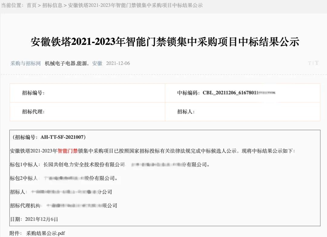新突破 | yabo.com共创连续中标安徽、江西铁塔智能门禁锁项目